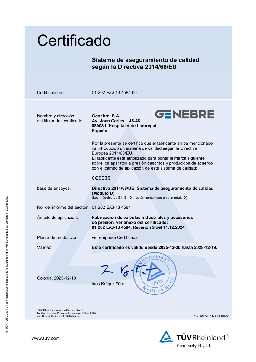 Consulte nuestra POLÍTICA DE CALIDAD Y AMBIENTAL DE GENEBRE.